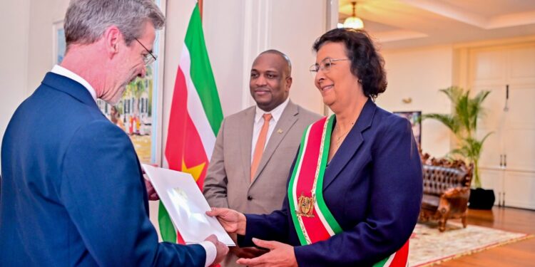 President Jennifer Simons ontving woensdag de geloofsbrieven van de niet-residerende ambassadeurs van Oostenrijk, Portugal en Panama. De drie landen onderstreepten daarbij hun bereidheid om de bilaterale samenwerking met Suriname te verdiepen, met aandacht voor economie, onderwijs, klimaat en duurzame ontwikkeling.