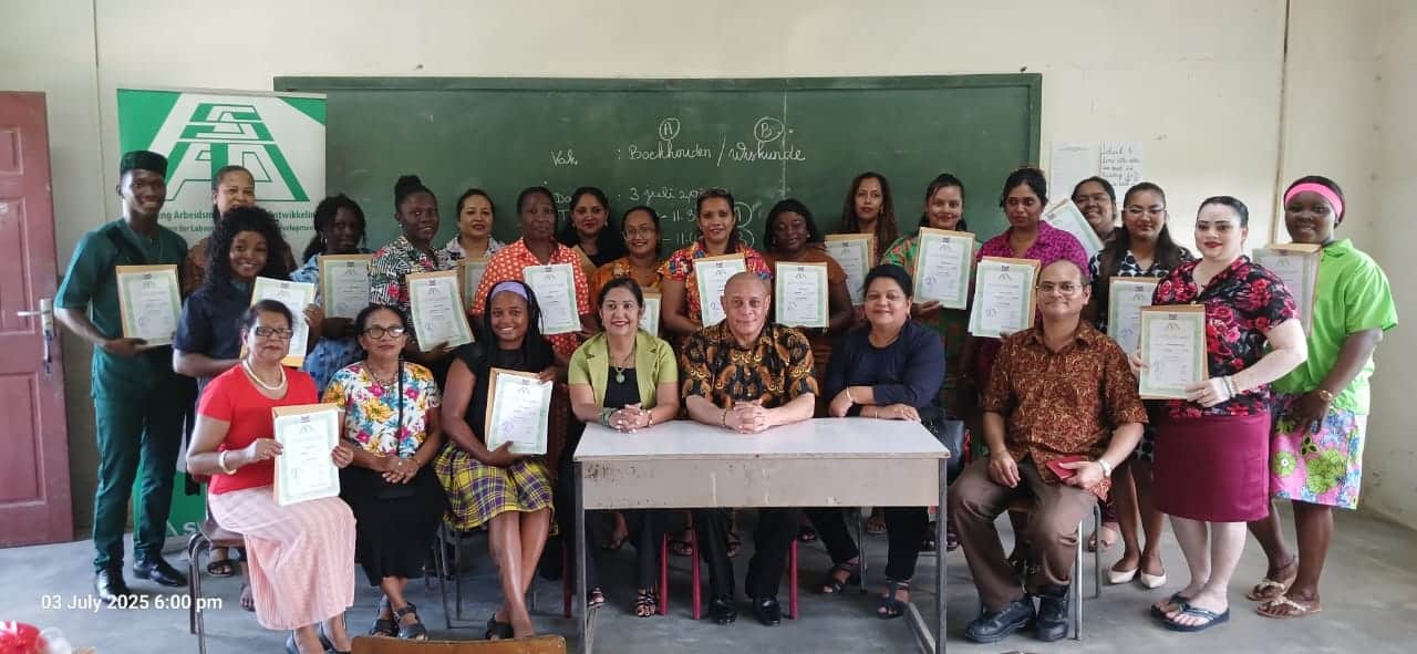 De heer Mathoera, directeur van de Savitrie Muloschool waar de training werd verzorgd, sprak de cursisten bemoedigend toe. “Jullie hebben geïnvesteerd in jullie toekomst. Wees trots op deze stap – het is een fundament waarop jullie verder kunnen bouwen”.