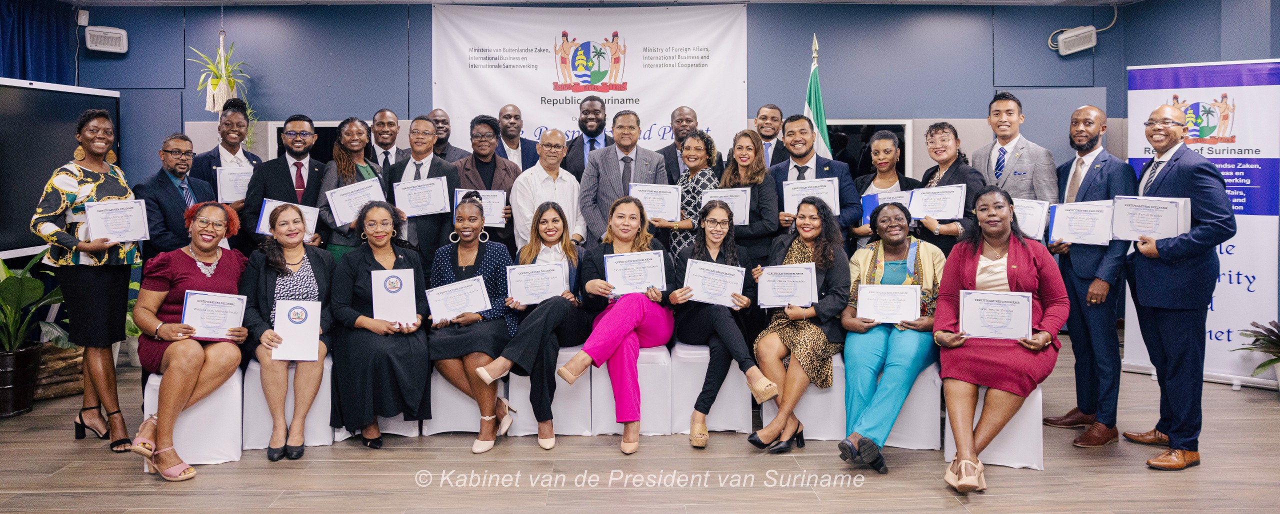 De bewindsman bedankte alle actoren die betrokken zijn geweest bij de totstandkoming en het verzorgen van deze belangrijke cursus. Deze cursus werd verzorgd door het Suriname Diplomaten Instituut, een werkarm van het ministerie van BIBIS. In de acht weken durende cursus zijn ruim 30 onderwerpen aan de orde gekomen. Deze omvatten, onder andere, het actief luisteren en onderhandelen, de fundamentele vaardigheden voor diplomaten om effectief te communiceren en tot overeenstemming te komen, praktische vaardigheden zoals kennis van kleding en protocol, alsook de Engelse taal, die zeer belangrijk is voor internationale relaties en bij onderhandelingen.