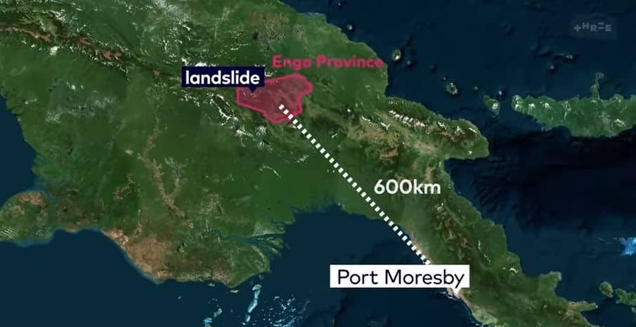 De ramp vond plaats in de nacht van donderdag op vrijdag. Delen van de hooggelegen provincie Enga werden getroffen door een enorme aardverschuiving, waarbij een compleet dorp werd bedolven onder aarde en rotsen. Aanvankelijk werd er al rekening gehouden met veel slachtoffers, maar de omvang van de ramp bleef lang onduidelijk. Het getroffen gebied is afgelegen en moeilijk bereikbaar, mede doordat een van de belangrijkste wegen is geblokkeerd.