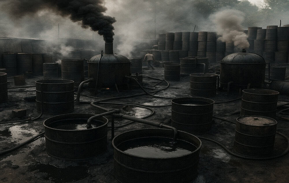 In het bericht wordt gesteld dat er oliehoudend afval werd opgeslagen en verwerkt. Daarnaast zou een afgraving zijn gevuld met verwerkte olie, die vervolgens werd gefilterd met het oog op verdere distributie. Deze handelingen zouden een risico vormen voor het milieu en in strijd zijn met geldende wet- en regelgeving.