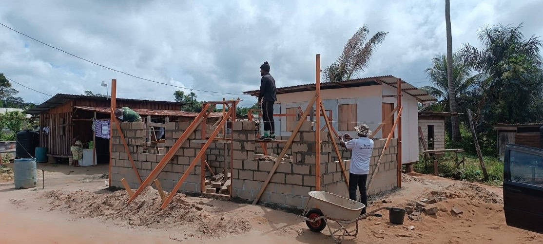 Ook in het binnenland gaat de bouw van nieuwe huizen gestaag door. De bouwteams van AHP werken onvermoeibaar om de projecten af te ronden, zodat ook plattelandsgemeenschappen kunnen profiteren van betere leefomstandigheden.