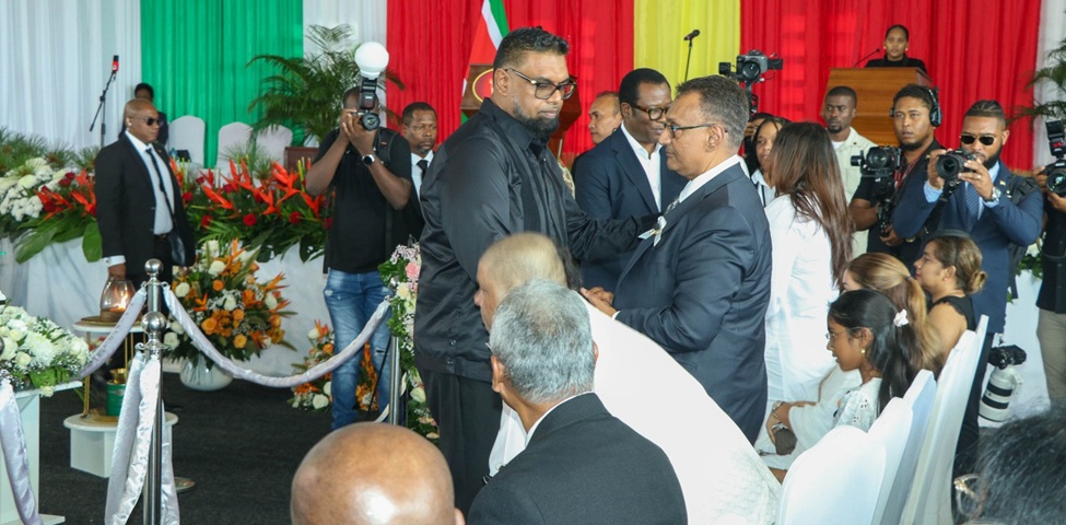 De Guyanese president Irfaan Ali heeft dinsdag tijdens de staatsuitvaart van voormalig president Chandrikapersad Santokhi op indringende wijze afscheid genomen van de Surinaamse oud-leider. In zijn toespraak omschreef hij Santokhi als een dierbare vriend, broer en staatsman, met wie hij niet alleen op regeringsniveau, maar ook op persoonlijk vlak een hechte band onderhield.