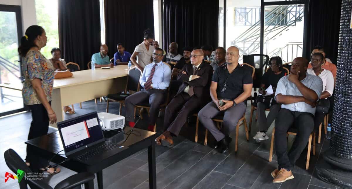 Arbeidsinspecteurs en aspirant-inspecteurs van het ministerie van Arbeid, Werkgelegenheid en Jeugdzaken (AWJ) hebben op dinsdag 27 mei 2025 een intensieve training gevolgd over de toepassing en handhaving van de Wet Werkvergunning Vreemdelingen. Tijdens deze interactieve sessie gaven deskundigen van het onderdirectoraat Juridische en Internationale Zaken (JIZ) en de afdeling Werkvergunning Vreemdelingen presentaties over de aanvraagprocedure, wettelijke bepalingen en praktijkuitdagingen.