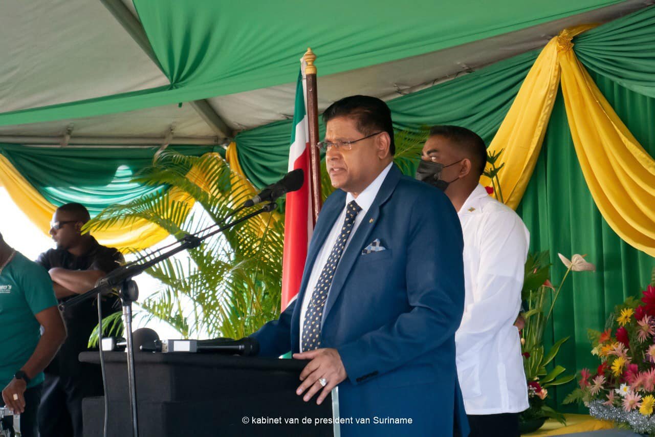 President Chandrikapersad Santokhi en de ministers Amar Ramadhin van Volksgezondheid en Prahalad Sewdien van Landbouw, Veeteelt en Visserij, zijn met een delegatie naar het rijstdistrict Nickerie afgereisd voor een tweedaags bezoek. De delegatie is aanwezig voor de opening van een particuliere haven en neemt deel aan een particuliere avond.
