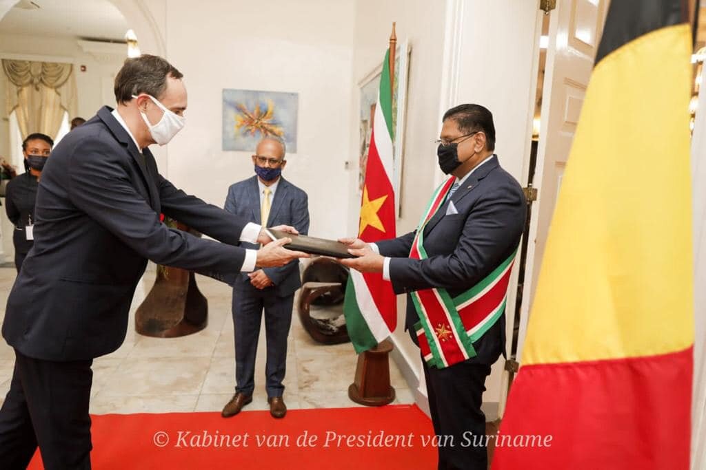 De niet-residerende ambassadeurs van het Koninkrijk België, Hugo Verbist, de Republiek Panama, Selvia Edith Miller Palmer, en Israël, Itai Bardov, hebben vandaag hun geloofsbrieven aangeboden aan president Santokhi. Dit vond vandaag plaats in het presidentieel paleis.