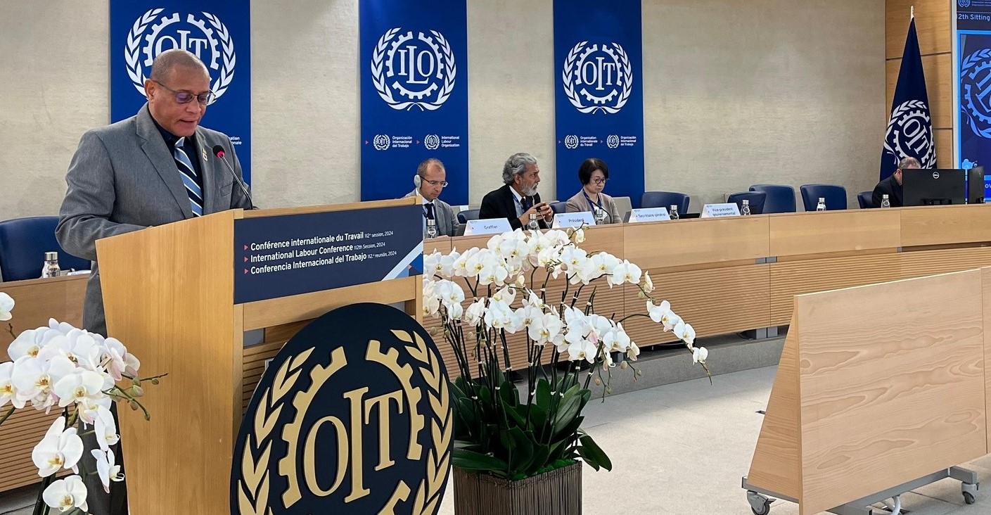 Minister Steven Mac Andrew en de onderdirecteur Juridische- en Internationale Zaken van het ministerie van Arbeid, Werkgelegenheid & Jeugdzaken (AWJ), Glenn Piroe, hebben op dinsdagmiddag 11 juni 2024 in Genève, Zwitserland, een ontmoeting gehad met Ana Virginia Moreira Gomes, de pas aangestelde Regional Director van het ILO regionaal kantoor voor Latijns-Amerika en het Caribisch gebied.