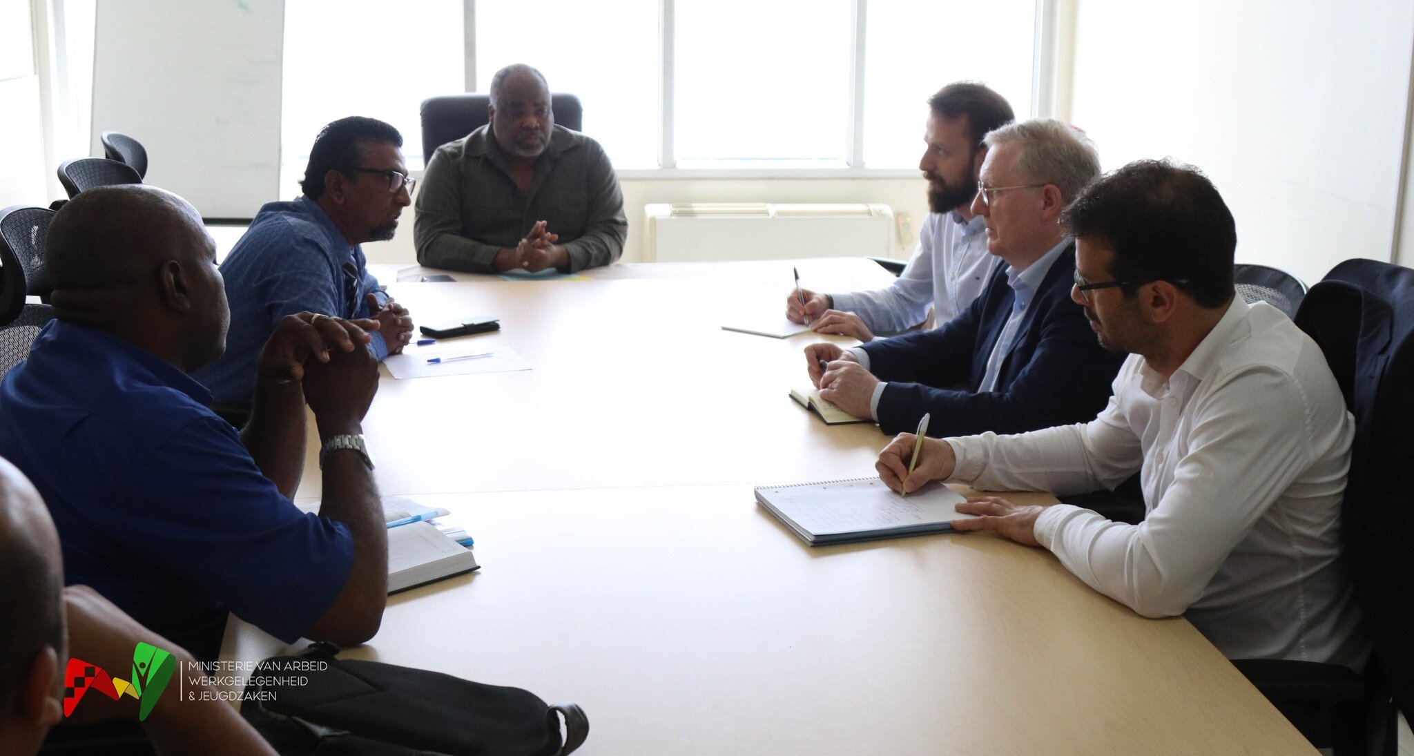 De consultant was met enkele collega’s die deel uitmaken van een team van consultants, dat adviesdiensten verleent aan het ministerie van Natuurlijke Hulbronnen. De directie van het ministerie die het gesprek voerde met de consultant en zijn team, bestond uit: directeur, Jimmy Belfor; de Inspecteur- Generaal van de Arbeidsinspectie, Rowan Noredjo; onderdirecteur Juridische en Internationale Zaken, Glenn Piroe; en Brian Creebsburg, hoofd Dienst der Arbeidsbemiddeling.