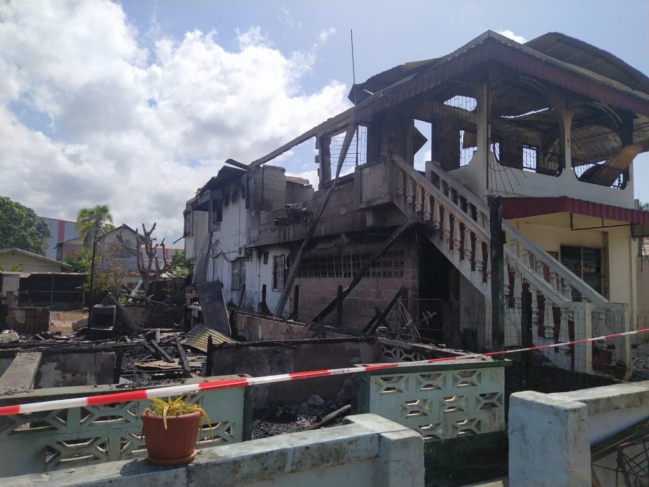 C.B kon nog enkele aanwijzingen doen van de plek waar het vuur zijn huis raakte, voordat de vlammen volledig overnamen. De woning die volledig opgetrokken is in steen is grotendeels verwoest. Ook twee andere woningen van omwonenden zijn door de brand aangetast. Op de woning van een ressortraadslid, naast het adres waar R.U is omgekomen is er duidelijke schroeischade waar te nemen. Enkele ramen van het huis zijn vernietigd.