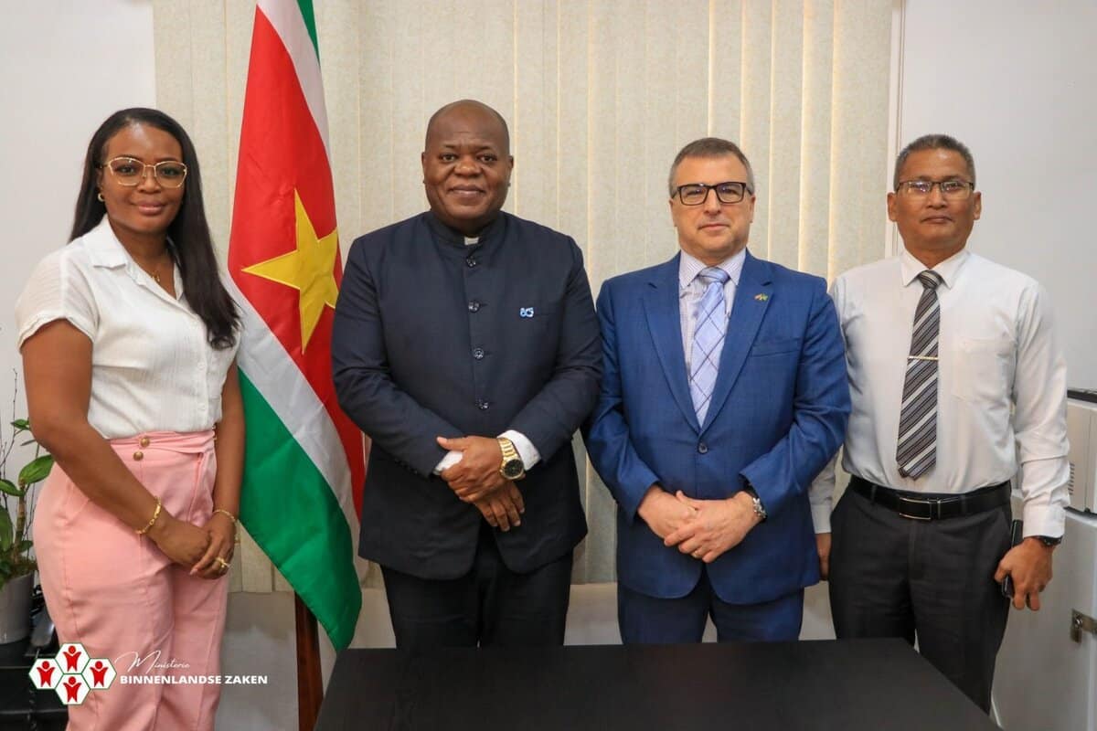 In de vergaderruimte van het ministerie ontving minister Marinus Bee de Braziliaanse ambassadeur, Marcelo Baumbach. Bij het gesprek waren ook directeur Binnenlandse Zaken (Biza) Sanduela Belong en vertegenwoordigers van de Braziliaanse ambassade aanwezig. Beide partijen onderstreepten het belang van structurele dialoog en kennisdeling om de bilaterale banden verder te verdiepen.