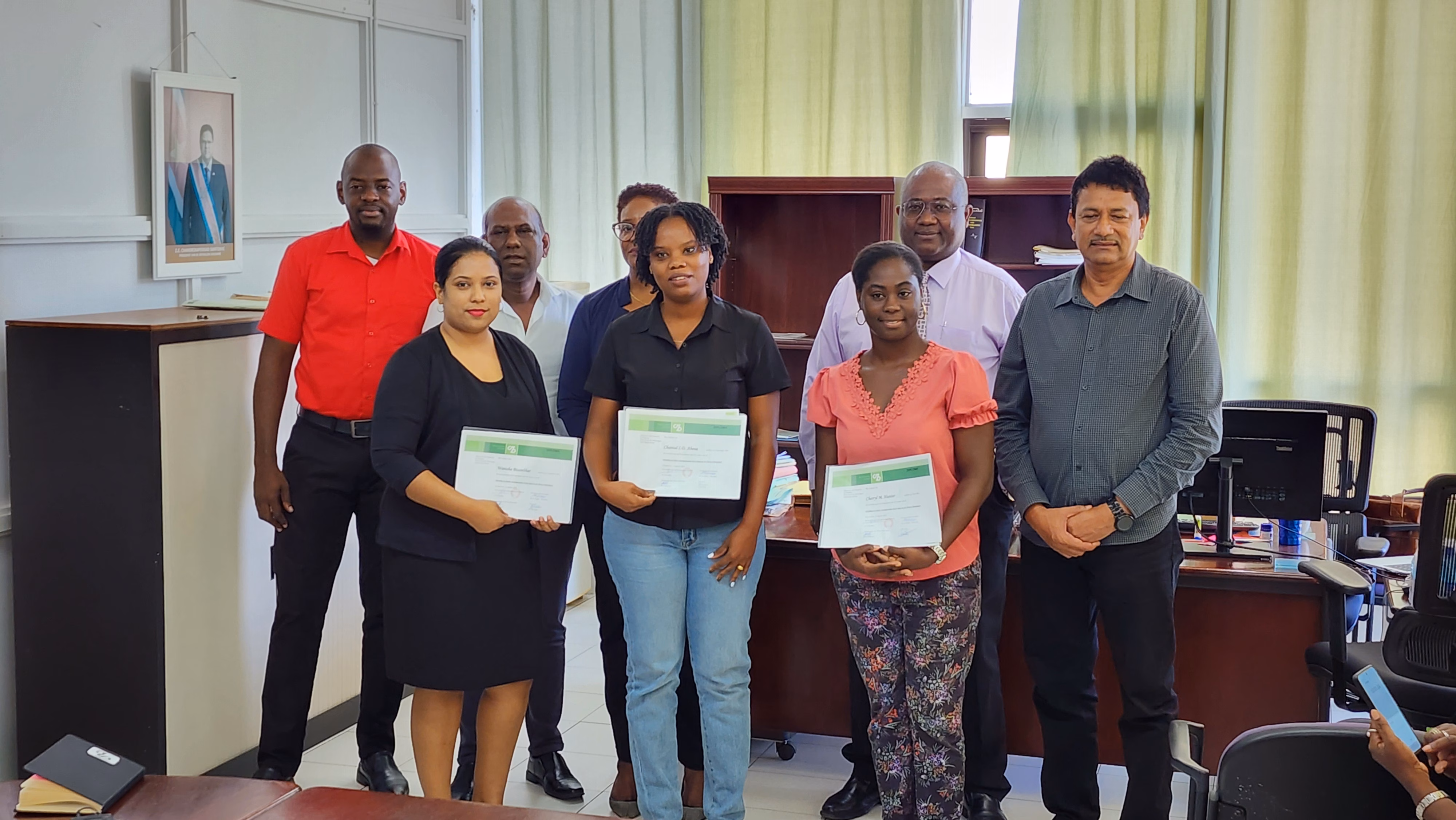 Het Directoraat der Belastingen heeft op donderdag 17 oktober met trots vier nieuwe Aanslagregelaars verwelkomd. Deze geslaagden ontvingen hun diploma, na een intensieve vierjarige opleiding tot Junior Aanslagregelaar, die hen voorbereidde op hun belangrijke rol binnen de Belastingdienst.