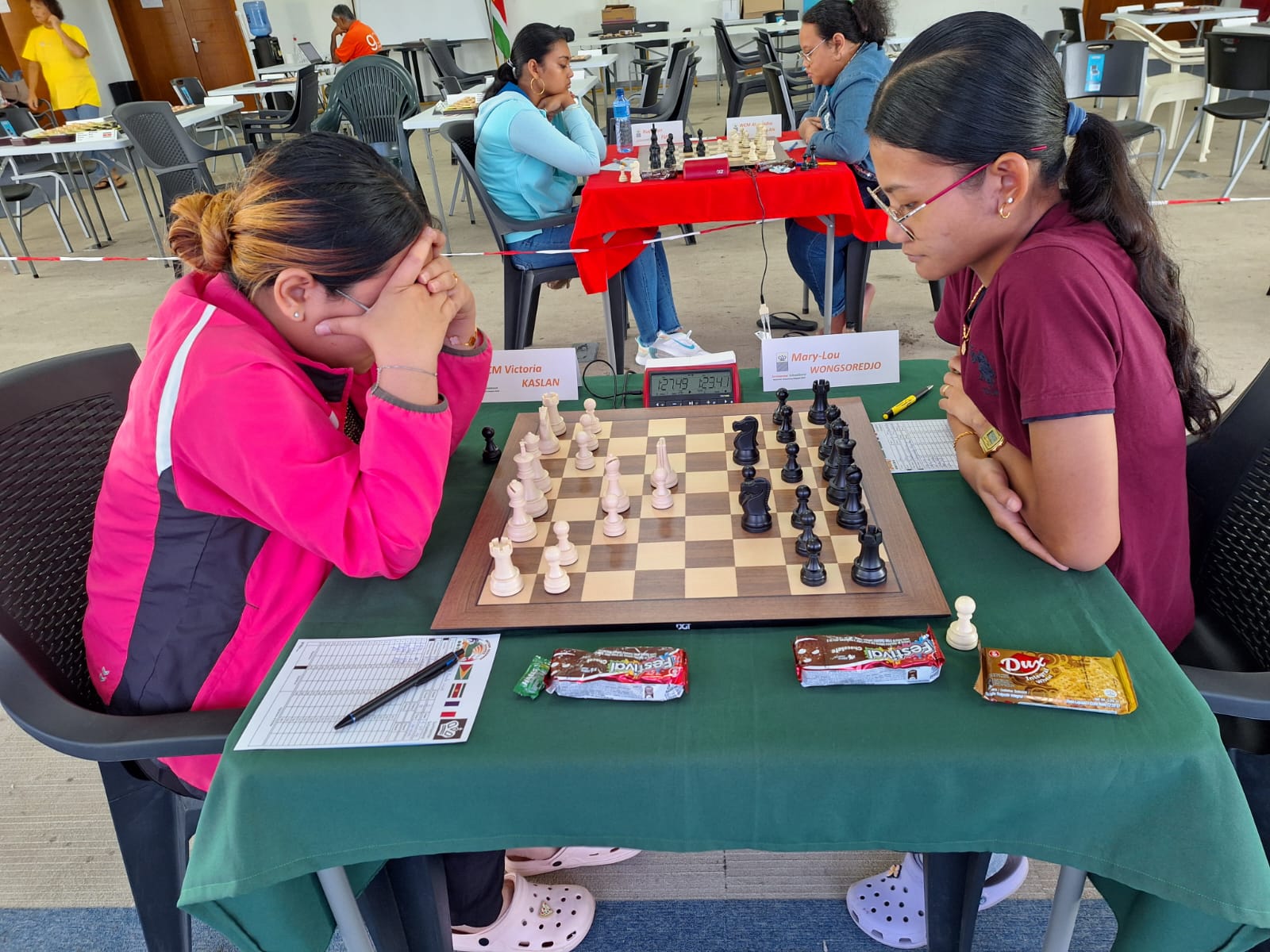 Joëlle Wijnhard versloeg verder Janice Orasji. Maandagmiddag werd de inhaalpartij tussen Maylee Tjong Tjin Joe en Shefali Creebsburg afgewerkt. Eerstgenoemde won deze partij.
