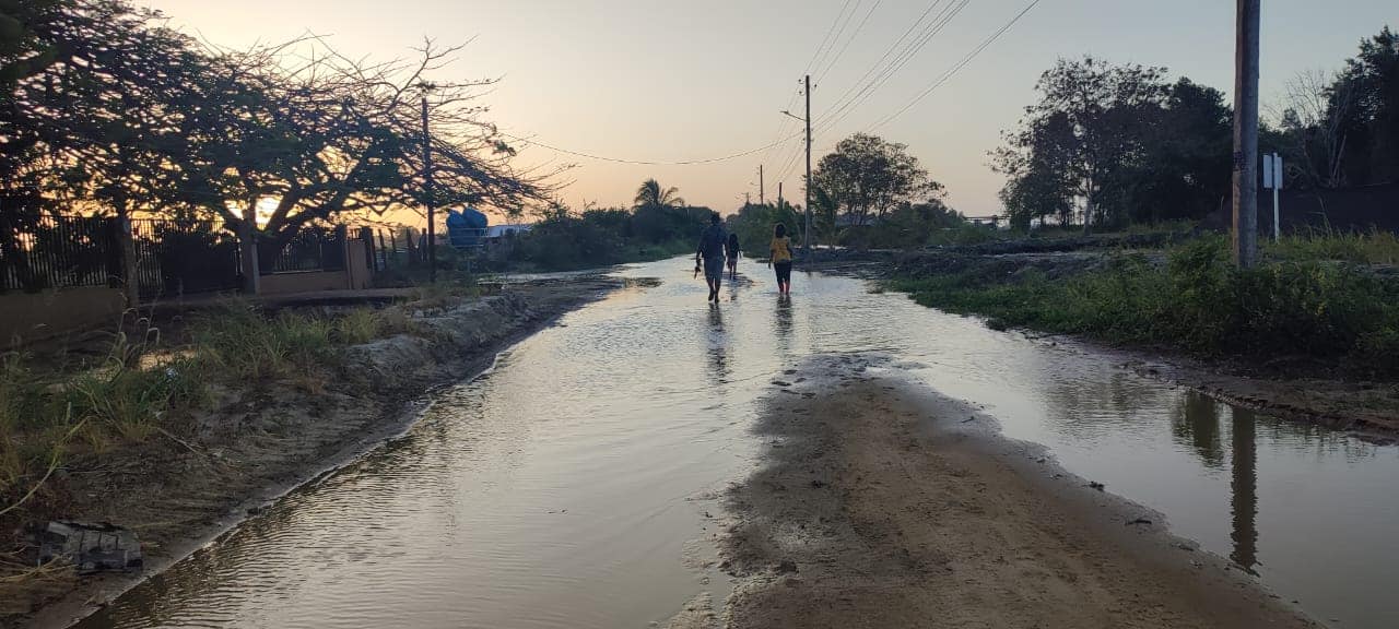 De problemen begonnen vrijdagmiddag, toen bewoners al aan de media aangaven dat ze zich ernstig zorgen maken. Eerder die dag was een deel van de zandweg onbegaanbaar geworden, en delen van het terrein van dhr. Ganpat, waar het mangroveproject van professor Idris Naipal wordt uitgevoerd, waren niet meer zichtbaar omdat het water al het zand had weggespoeld.