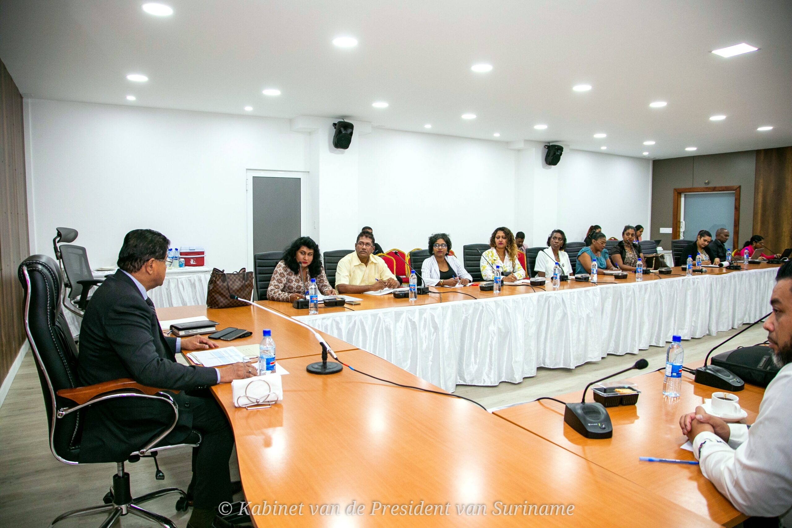 President Santokhi heeft in aanwezigheid van de ministers Bronto Somohardjo, Steven Mac Andrew, David Abiamofo, Stanley Raghoebarsing, Rishma Kuldipsingh, Krishnakoemarie Mathoera en Kenneth Amoksi een aantal issues aangehoord, die door BVL/ALS-voorzitter Reshma Mangre zijn aangekaart. Zo gaf de voorzitter aan dat de BVL/ALS niet is opgenomen in het tripartiet overleg en ook niet wordt uitgenodigd bij gesprekken met de Raad van Vakcentrales in Suriname (Rakasur). “We willen graag worden opgenomen in tripartiet overleg”, aldus voorzitter Mangre.