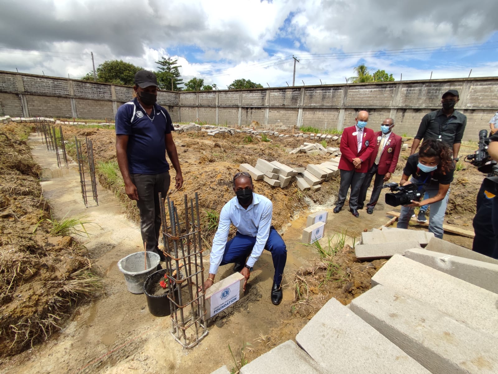 WhatsApp Image 2021 11 06 at 11.26.18 AM 1 In Santo Boma te Welgedacht A heeft Helstone samen met Augustine en Jerry Hoffman, District Governor van Lions Club, de eerste steen gelegd. Dit project gaat het mogelijk maken dat de jeugdigen in detentie praktijklessen kunnen volgen in verschillende richtingen zoals elektra, gawasa en lassen. De praktijkloods wordt een aanvulling op de twee gebouwen die in 2019 ceremonieel zijn opgeleverd. Dit was kenmerkend de eerste fase van het JCC. Sinds toen volgen de jongeren lessen in de gebouwen die speciaal zijn ingericht met het oog op onderwijs.
