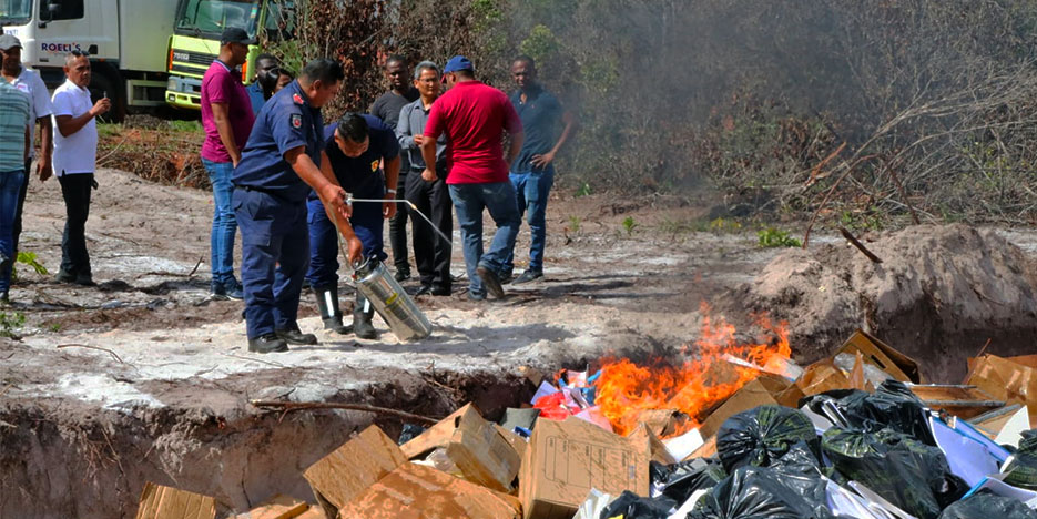 Het Ministerie van Binnenlandse Zaken heeft op zaterdag 13 januari 2024 oude documenten van het Centraal Bureau voor Burgerzaken (CBB) verbrand te mast 43 in het district Para.