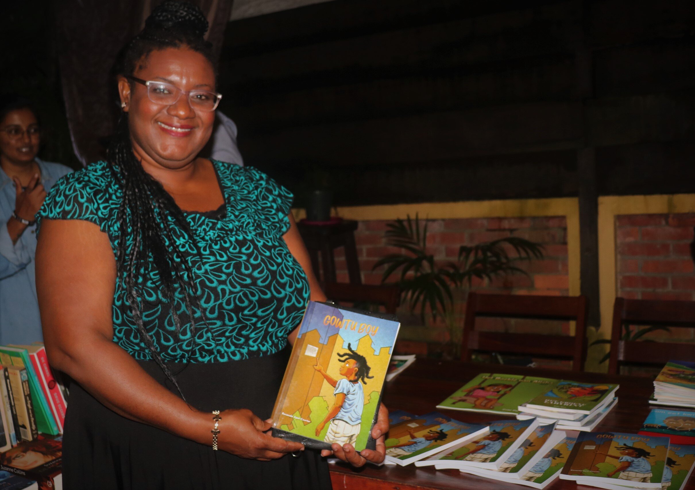 Schrijfster Rosanda Apai – Courtar blikt tevreden terug op de presentatie van haar debuutboek ‘Gowtu Boy’. Ze had op woensdag 15 februari 2023 de gelegenheid het kinderboek te presenteren tijdens een drukbezochte schrijversavond van Schrijversgroep ’77 in Tori Oso.