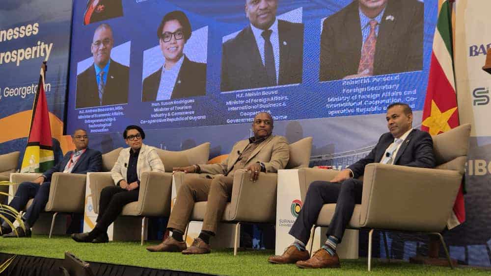 Suriname en Guyana scherpen hun bilaterale agenda aan. Minister Melvin Bouva (BIS) en zijn Guyanese ambtgenoot Hugh Todd bespraken in Georgetown concrete vervolgstappen om diplomatieke, economische en infrastructurele samenwerking te versnellen, in de marge van de International Business Conference (14 – 16 oktober).