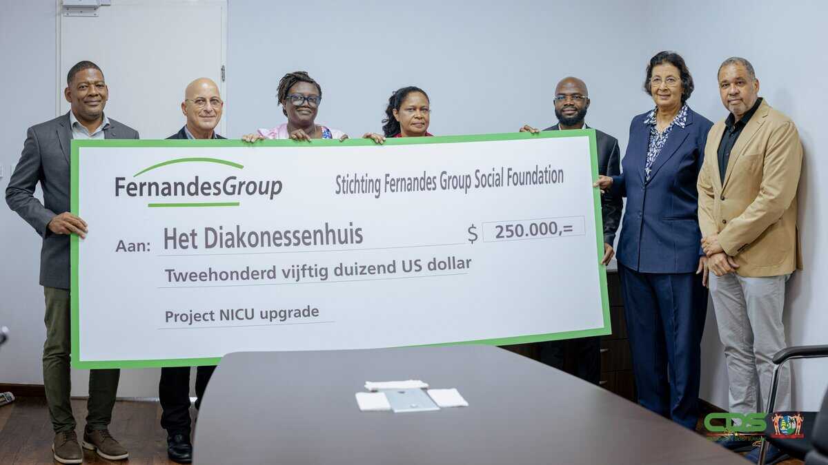 De Fernandes Social Foundation heeft een donatie van 250.000 euro gedaan voor de volledige renovatie van de couveuse-afdeling van het Diakonessenhuis. Minister André Misiekaba nam de bijdrage op 9 december in ontvangst op het Kabinet van de President, in aanwezigheid van president Jennifer Simons.