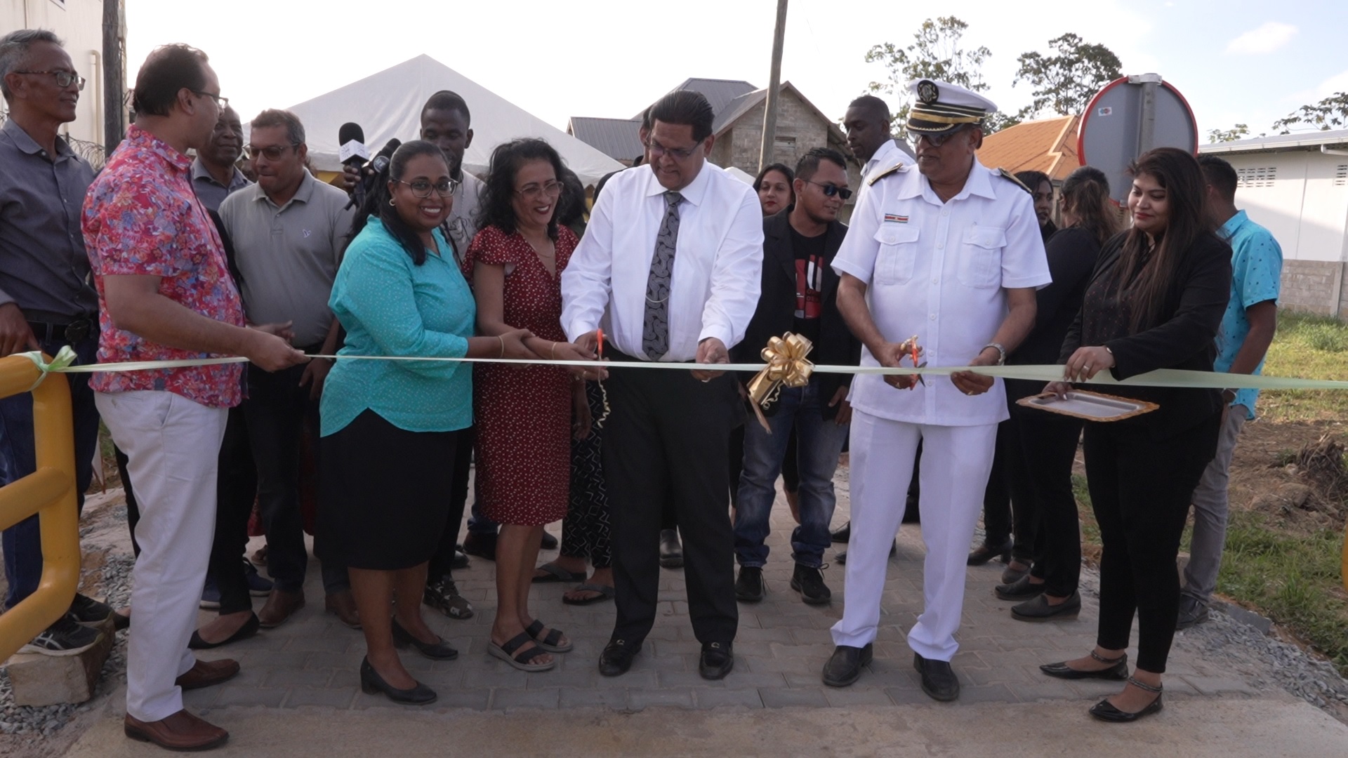 De brug aan de Romanaweg, een zijstraat van de Indira Ghandiweg, liep bij regenweer onder water en was volgens buurtbewoners in een onberekenbare en zeer slechte staat. De districtscommissaris, dc, sprak gisteren bij de ingebruikname van de brug. Hij geeft aan dat er met de renovaties zoals dit van de brug gewerkt wordt aan het mooier maken van de Indira Ghandiweg.
