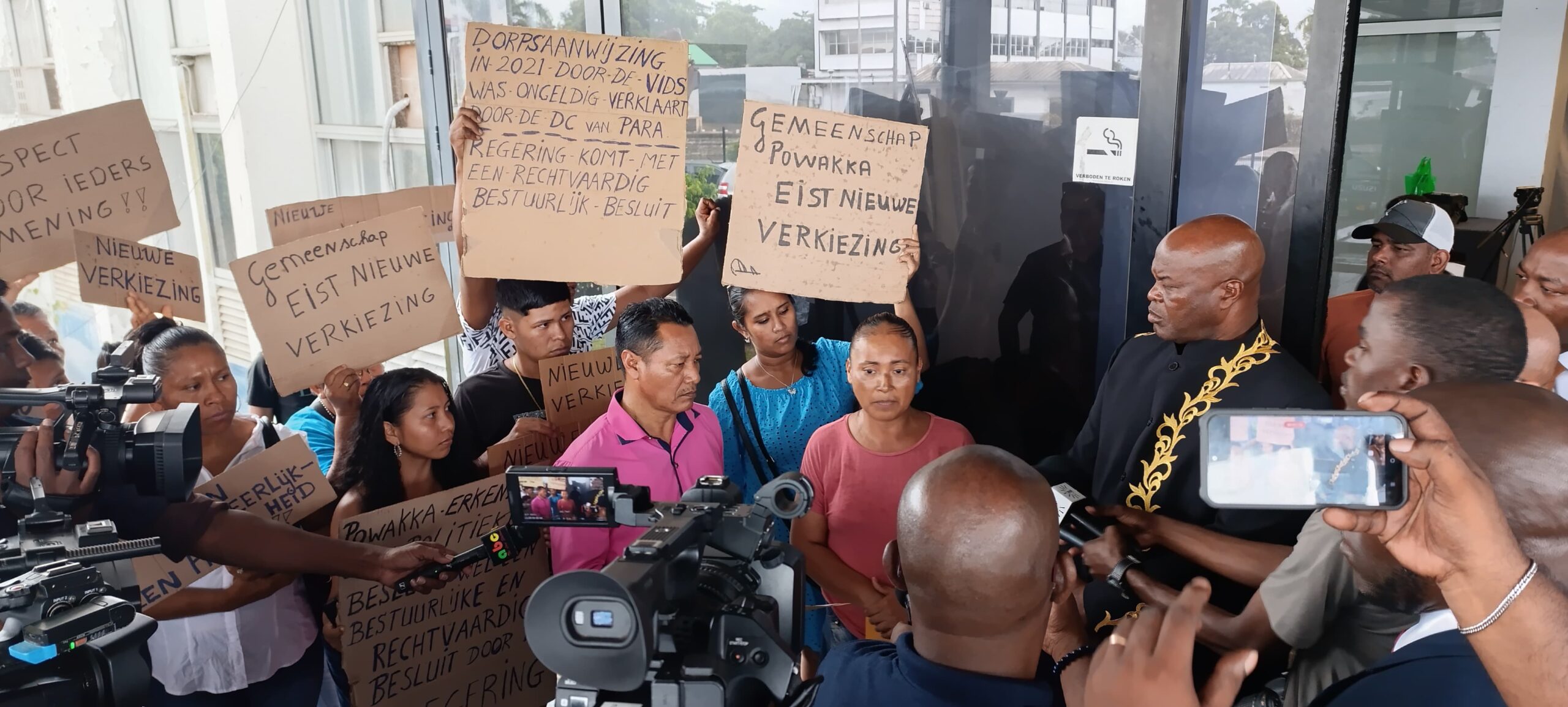 Een deel van de gemeenschap van het dorp Powakka wil dat er nieuwe verkiezingen worden uitgeschreven voor het kiezen van een dorpsbestuur voor hun woongebied. Vandaag is een groep bewoners, onder leiding van Lucienne Sabajo en Makosi Powel, naar het kabinet van de vicepresident gestapt om een petitie aan te bieden.