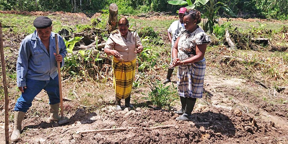 DAOB-directeur Hermien Pavion gaf aan dat een halve hectare grond is opengestoten en opgeschoond om uitsluitend met gember beplant te worden. Na de training verzorgd te hebben, is er gewerkt aan het irrigatiesysteem. De plantjes hebben een hoogte bereikt van 35 cm en zijn klaar om in de grond gestopt worden. Directeur Pavion verklaart dat na het beplanten het groeiproces gevolgd zal worden.