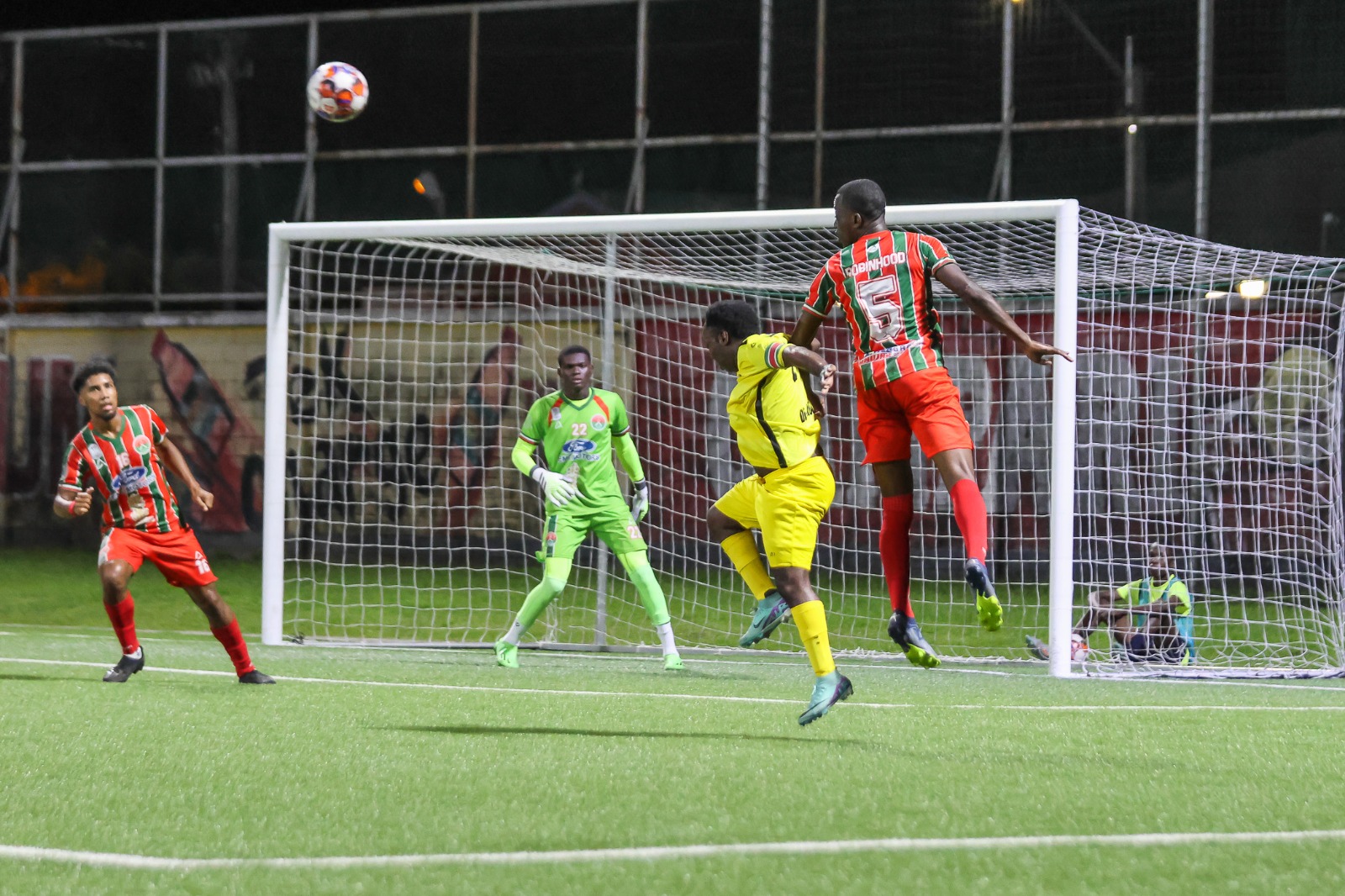 Kompagnie haalde Cairo onderuit, maar arbiter Kevas Pinas gaf het voordeel en liet doorspelen. Andro kwam in balbezit en deponeerde het leder in het doel; 1-0. Binnen 10 minuten strafte Cairo wederom een fout van Kompagnie af. De keeper speelde de bal verkeerd in, waardoor Adipi de bal wist te veroveren. De bal belandde vervolgens bij Cairo, die middels een lob makkelijk het net deed schudden; 2-0.