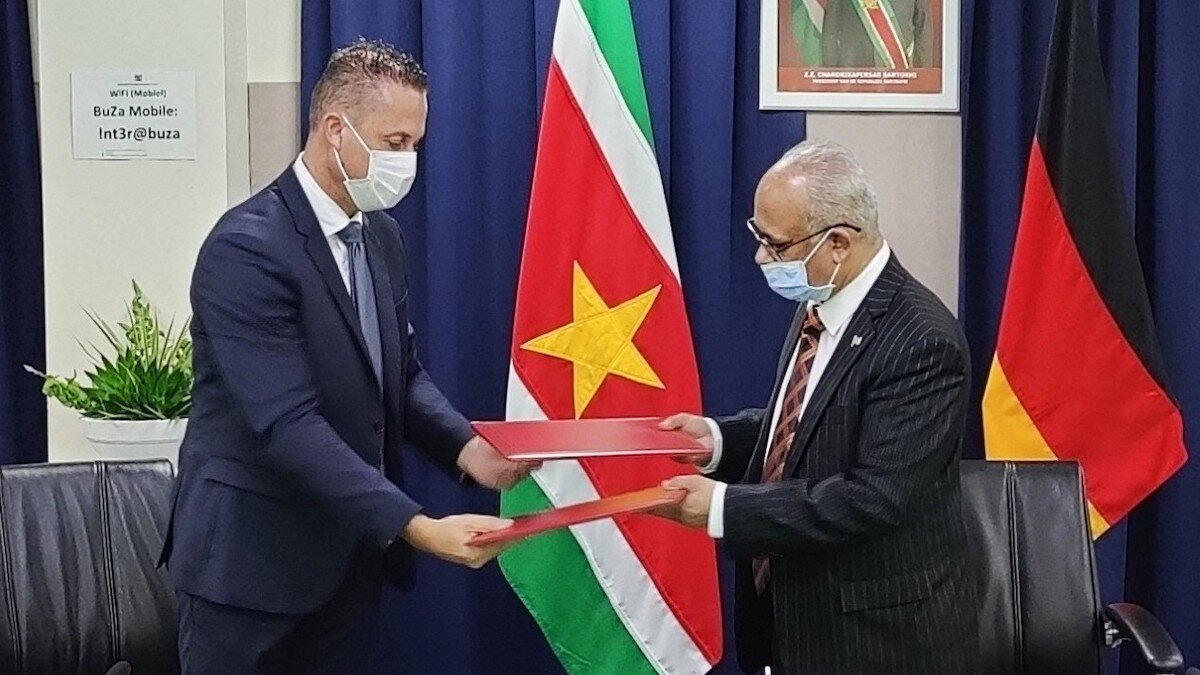 De minister van Buitenlandse Zaken, International Business en Internationale Samenwerking, Albert Ramdin, heeft donderdag een partij verbruiksartikelen ontvangen die ingezet kunnen worden voor het toedienen van Covid-19-vaccinaties. Kurt van Essen, honorair consul van de Bondsrepubliek Duitsland mocht deze namens Duitsland aan Suriname overhandigen. Het gaat om 400.000 naalden en spuiten, 100 stuks koelboxen om vaccins naar diverse locaties te transporteren, 1200 cold pack om de vaccins in de carries op lage temperatuur te houden en 3000 safety boxes voor het veilig opruimen van het afval.