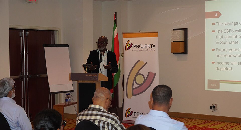 Hij haalt verder aan dat Suriname perioden heeft gekend van veel inkomsten uit natuurlijke hulpbronnen, maar het is niet gelukt om die inkomsten te verduurzamen. De sterke instituten die nodig zijn om die inkomsten optimaal te beheren ontbreken of zijn verzwakt. “Er gaan stemmen op, die zeggen dat Suriname een paar olieputten moet verkopen. Maar dan moet het wel eerst de overeenkomsten met de bedrijven die deze olie hebben gevonden, openbreken. Daarvoor zou de staat veel geld op tafel moeten leggen.” Eckhorst haalt verder aan dat op dit ogenblik niemand precies weet hoeveel olie er is gevonden, wat de verkoopprijs onzeker maakt. “Ik hoor verkoopbedragen tussen de 3- en 4 miljard dollar. Maar er kan in werkelijkheid dus voor 2 miljard dollar olie in zitten, of voor 100 miljard dollar.”