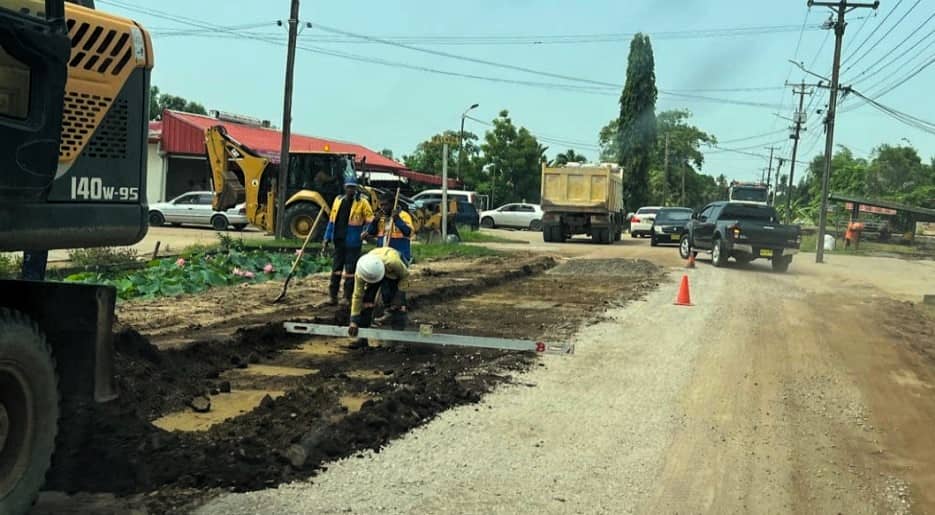 Het aannemingsbedrijf Tjongalanga N.V. is thans, in opdracht van het ministerie van Openbare Werken (OW), bezig om de zanddelen van de weg te herstellen om zo de weg begaanbaar te houden voor het verkeer. Dit maakt het commissariaat van Saramacca op haar Facebookpagina bekend.