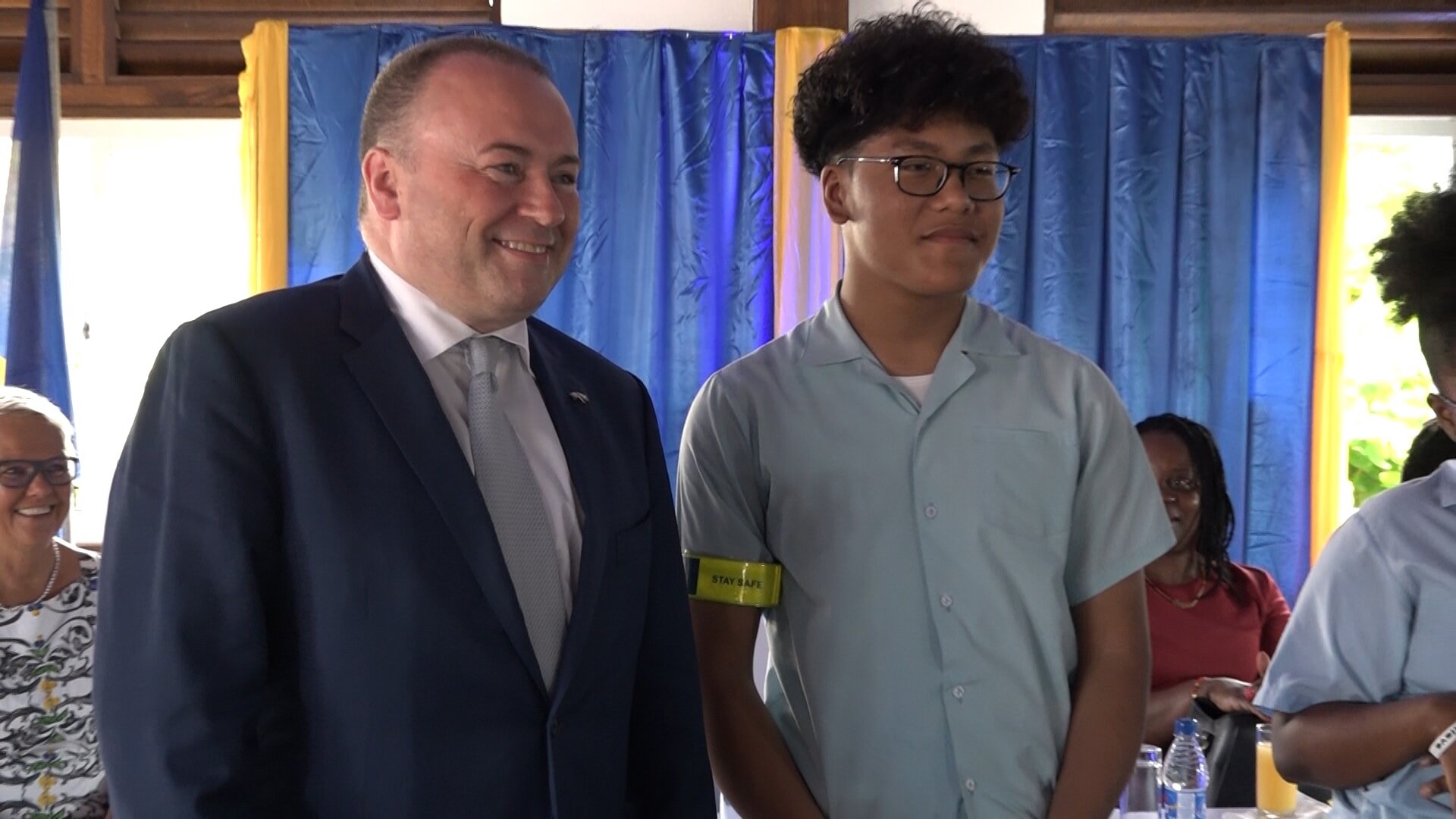 De Europese Ambassadeur voor de gebieden Guyana en Suriname, Fernando Ponz Canto, heeft vandaag samen met zijn directeur Brain Glynn een aantal nachtreflectoren overhandigd aan het ministerie van Onderwijs Wetenschap en Cultuur.