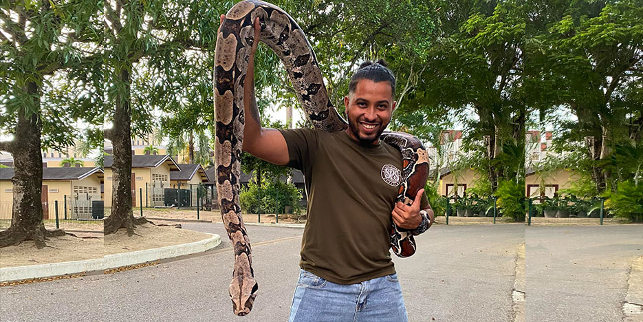 Slangenman bij Snake Patrol Suriname