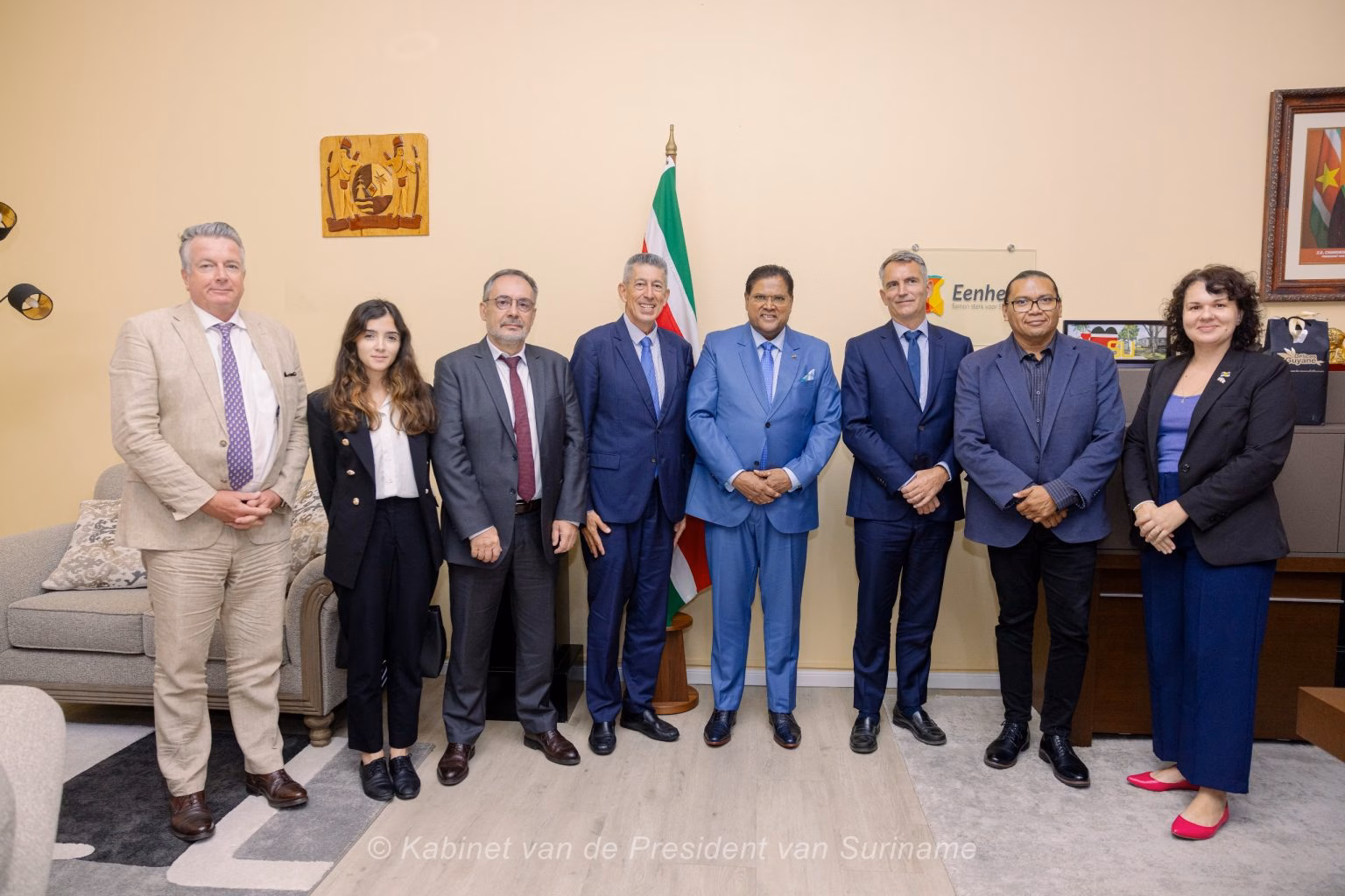 Op vrijdag 6 december 2024 bracht een Franse delegatie een beleefdheidsbezoek aan president Chandrikapersad Santokhi in het kader van de derde geherstructureerde River Council.