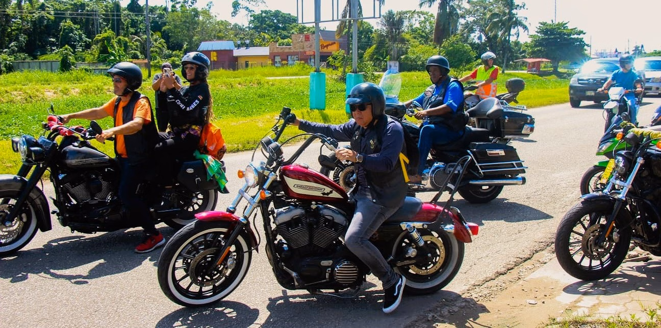 De motorrijders zijn hun toer gestart aan de ringweg met de bedoeling door verschillende buurten in Saramacca en Wanica te rijden. Er is gereden langs Jarikaba richting Uitkijk in Saramacca. Ook de bewoners van Creola in het district hebben genoten van de motorshow.