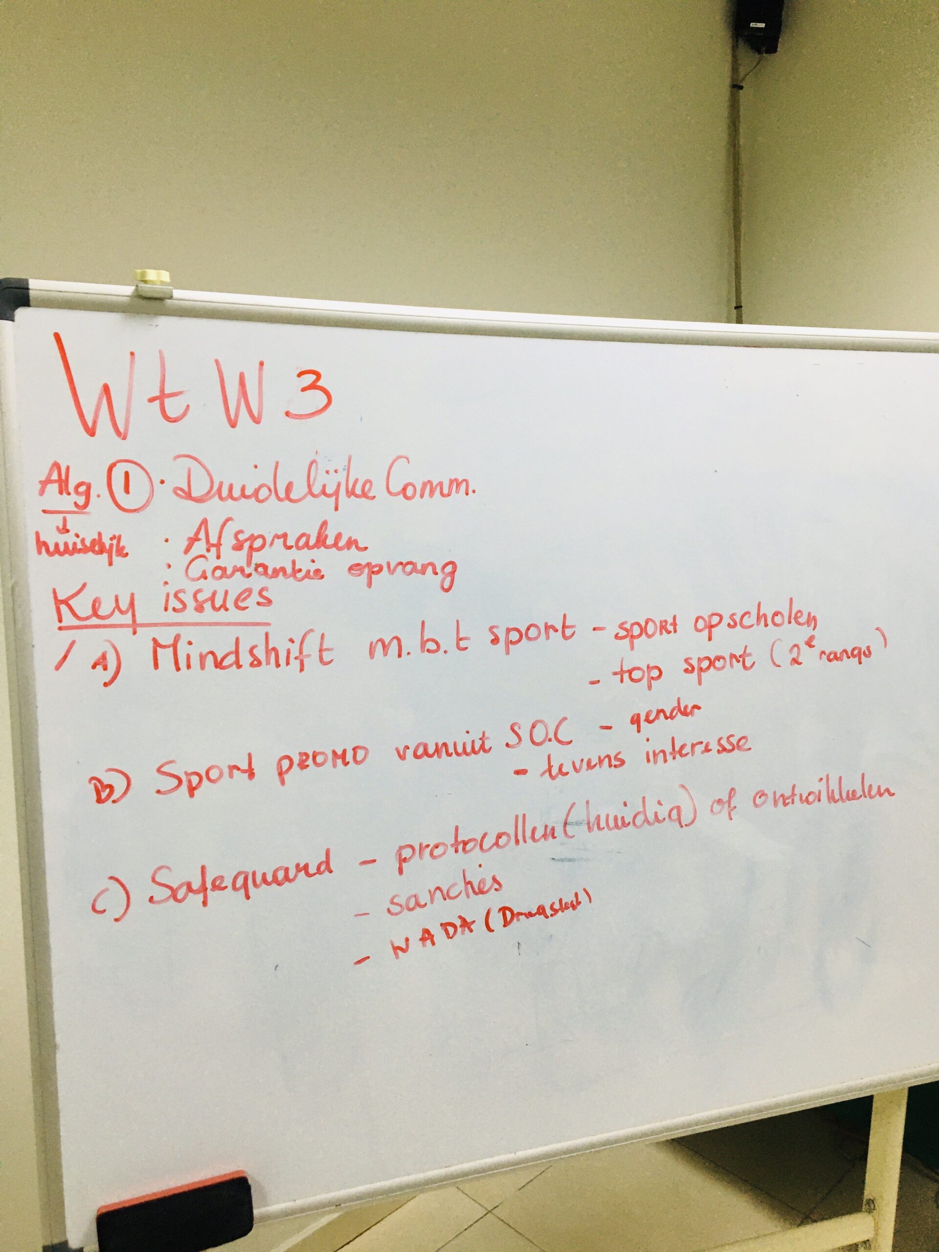 Bij de sessie stond centraal het terugblikken op de huidige genderverhoudingen in de sport en het vaststellen van uiterst belangrijke activiteiten tijdens de komende vier jaar als sportorganisatie. Hierbij werd gebruik gemaakt van een vragenlijst, het verslag van ‘Write the Wall’ van 2018 en een presentatie van de kernactiviteiten van de commissie tijdens de vorige bestuursperiode.