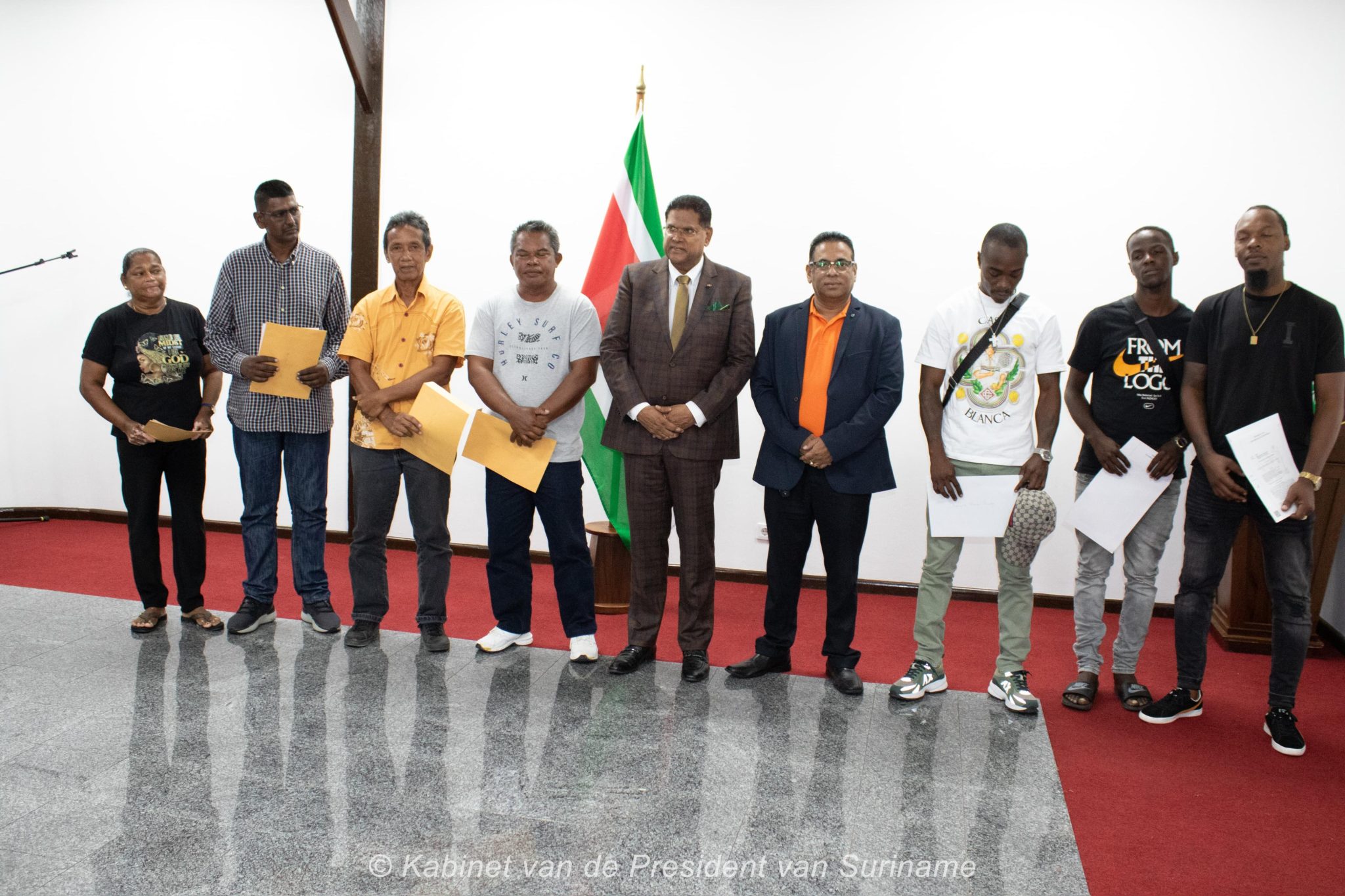 In het district Commewijne, specifiek in Mariënburg, vond op zaterdag 24 mei 2025 een symbolische uitreiking plaats waarbij president Chandrikapersad Santokhi persoonlijk documenten overhandigde aan artiesten en burgers. Tien artiesten ontvingen een officiële grondbeschikking, terwijl elf bewoners een bereidverklaring kregen voor percelen waarop zij al jaren wonen.