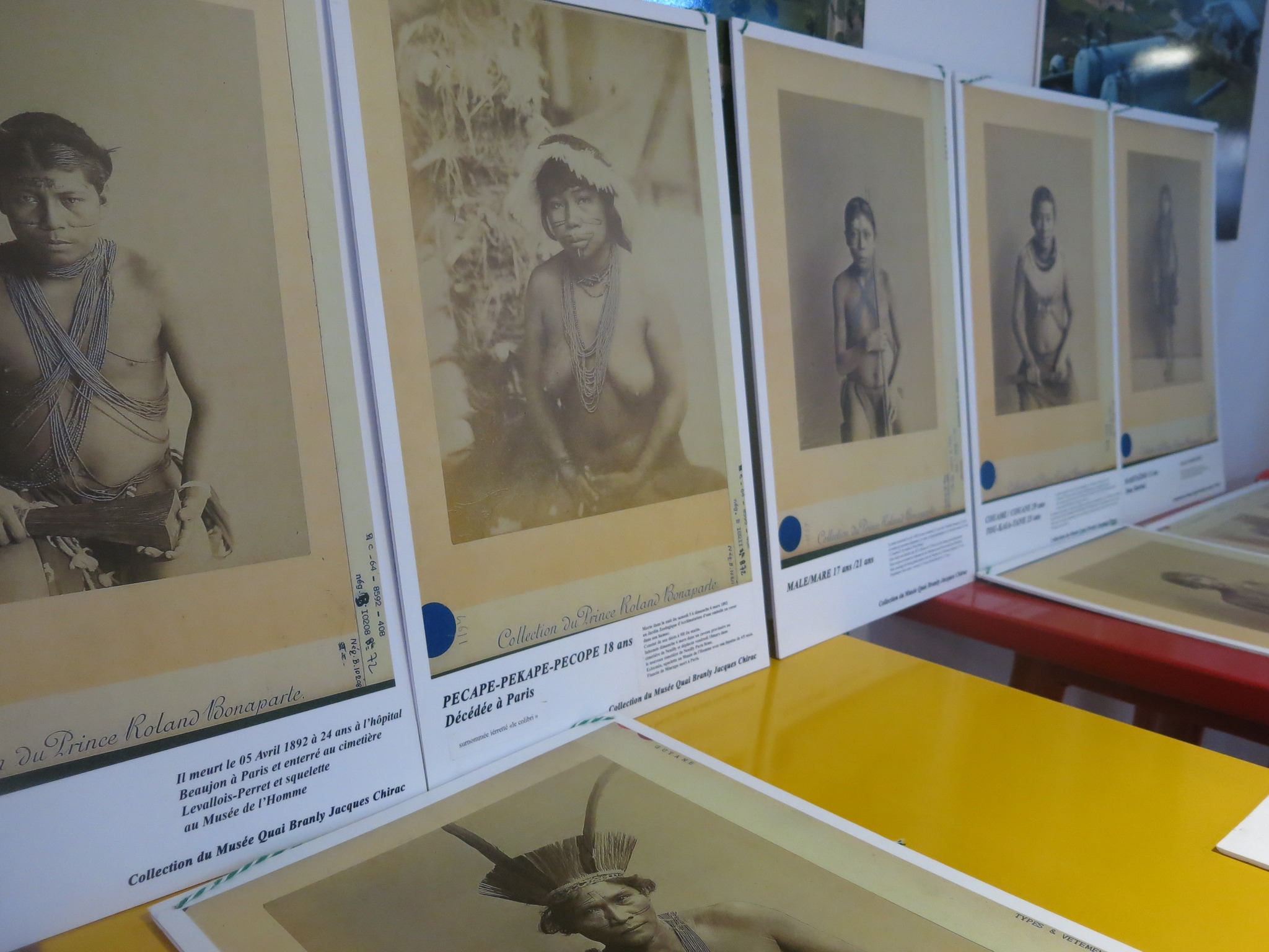 Tijdens de presentatie werden replica’s getoond van foto’s die in 1892 door A. Bonaparte zijn genomen van de tentoongestelde Kali’na en Arawak personen in de “Jardin d’Acclimatation” in Parijs.
