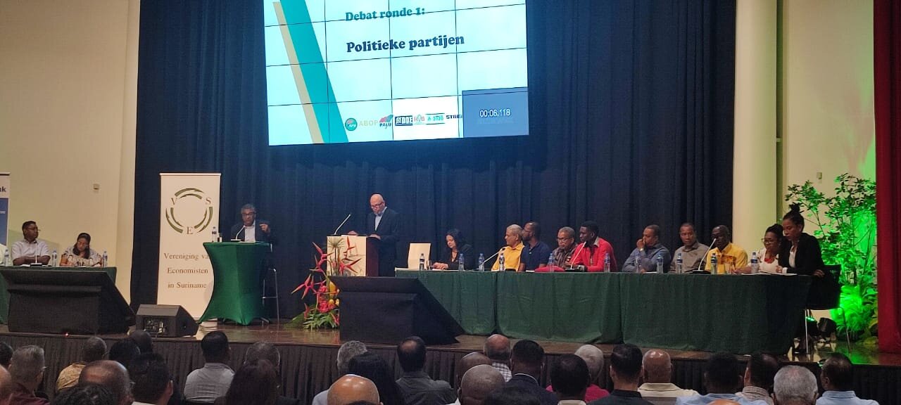 Op 17 juli hield de Vereniging van Economisten van Suriname, de VES, haar eerste tussentijdse debat. De politieke partijen die met de verkiezing hadden meegedaan van mei 2020 mochten in debat met een vertegenwoordiger van de regering en het aanwezige publiek mocht ook vragen stellen. Het onderwerp was de economische ontwikkeling na drie jaren regering Santokhi/Brunswijk.