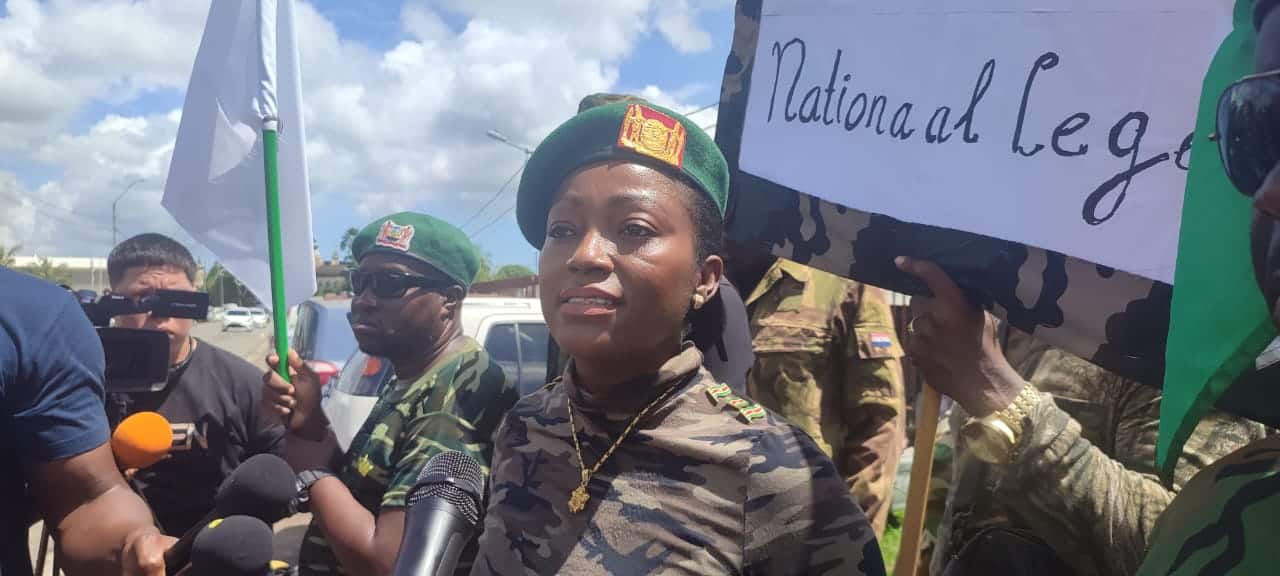 “Zoals u ziet staat er dat we strijden voor ons Nationaal Leger. We moeten ons inzetten voor de mensen die 1x 24 uur klaar staan om ons land te beschermen. Sinds Venetiaan is er niets gedaan voor ons leger die nu in een slechte staat verkeerd”, zegt Amafo tijdens haar toespraak.