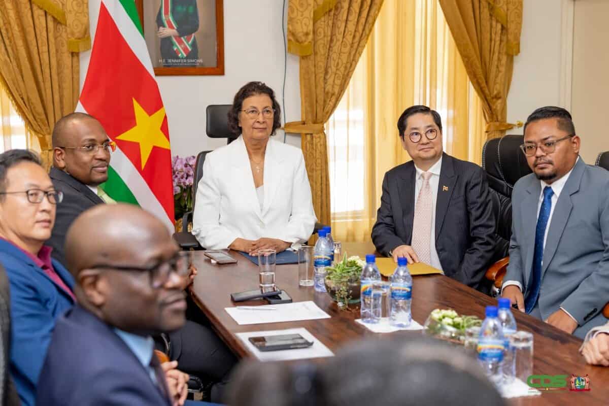President Jennifer Simons heeft woensdag 26 november 2025 op het Presidentieel Paleis overleg gevoerd met Jim Lok, honorair consul van Suriname in Hong Kong, en Zhang Run, directeur-generaal van de afdeling Latijns-Amerikaanse en Caribische Zaken van het Chinese ministerie van Buitenlandse Zaken.