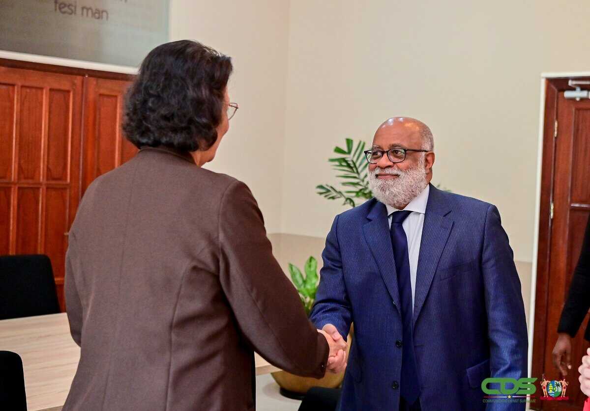 President Jennifer Simons heeft donderdag 20 november 2025 op het Kabinet van de President een werkbespreking gehad met Anton Edmunds, General Manager van het Caribbean Country Department van de Inter-Amerikaanse Ontwikkelingsbank (IDB). Centraal in het gesprek stonden de lopende programma’s in Suriname, met bijzondere nadruk op de verdere ontwikkeling en modernisering van de onderwijssector.