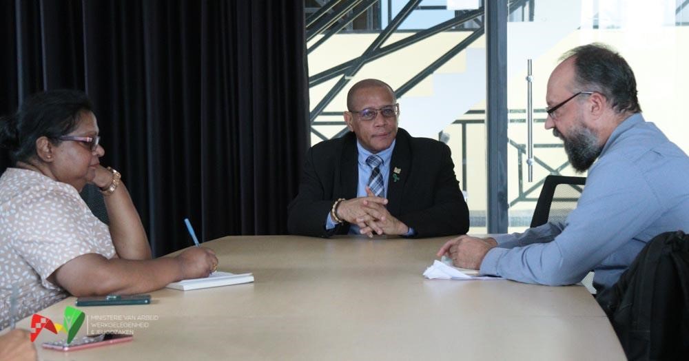 Minister Steven Mac Andrew van Arbeid, Werkgelegenheid en Jeugdzaken (AWJ) is op vrijdag 10 mei 2024 omslachtig geïnformeerd door een delegatie van de Internationale Arbeidsorganisatie (ILO), die enkele dagen in het land vertoefde in het kader van het in uitvoering zijnde Decent Work Country Programme 2023-2026, over de vorderingen voor wat betreft, verleende technische assistentie, maar ook de bevindingen betreffende mogelijke gebieden waar steun verleend kan worden.