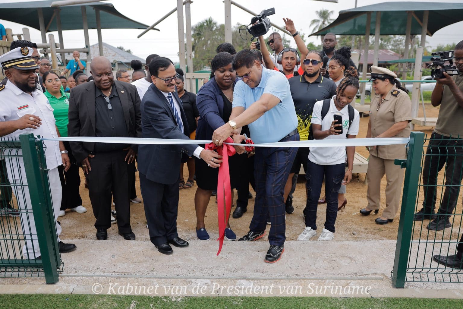 President Santokhi benadrukte tijdens de ceremonie het belang van gelijke sportkansen in alle districten. Sport bevordert verbroedering, communicatie en gezondheid binnen de samenleving. Het staatshoofd wees op het aanwezige sporttalent in Suriname en riep op om talentvolle sporters de nodige ruimte, faciliteiten, ondersteuning en coaching te bieden om topprestaties te leveren. President Santokhi sprak eveneens zijn waardering uit richting de Indiase ambassadeur, Subhash Gupta, en liep symbolisch de eerste meters op de nieuwe baan.