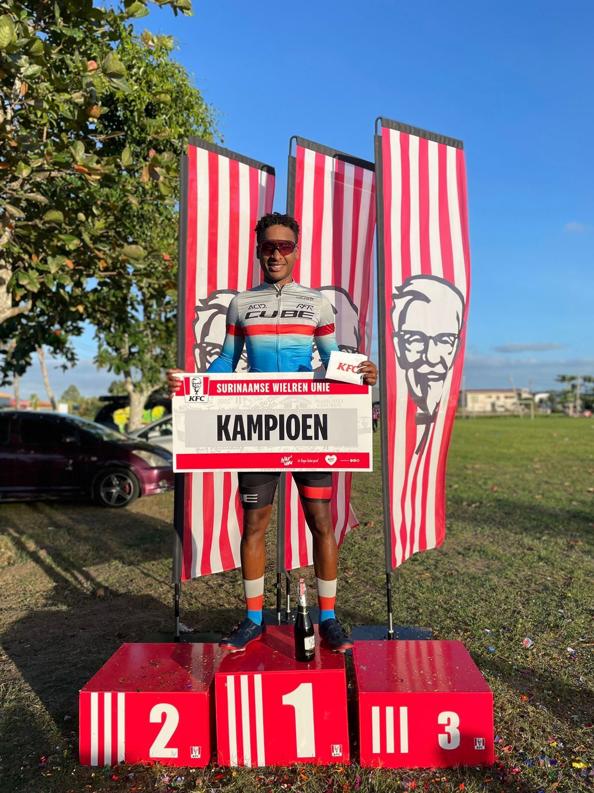Jorryn Simson verkeert in bloedvorm. De jonge wielrijder veroverde zondagmiddag de overall prijs van de KFC x SWU race. Eerder pakte Simson voor dit jaar de Warming up race en finishte hij als 2e op het onderdeel tijdrit achter rivaal Dimitri Madamsir. Allemaal wedstrijden onder auspiciën van de Surinaamse Wielren Unie (SWU).