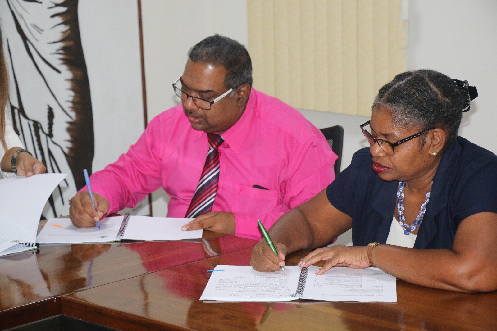 Onder toeziend oog van de minister van JusPol vond de ondertekening voor de Masteropleiding Wetgeving plaats, door de Directeur van Justitie Sharman Lakhisaran en Dr. Shanti Venetiaan, voorzitter van het Bestuur van de Anton de Kom Universiteit.