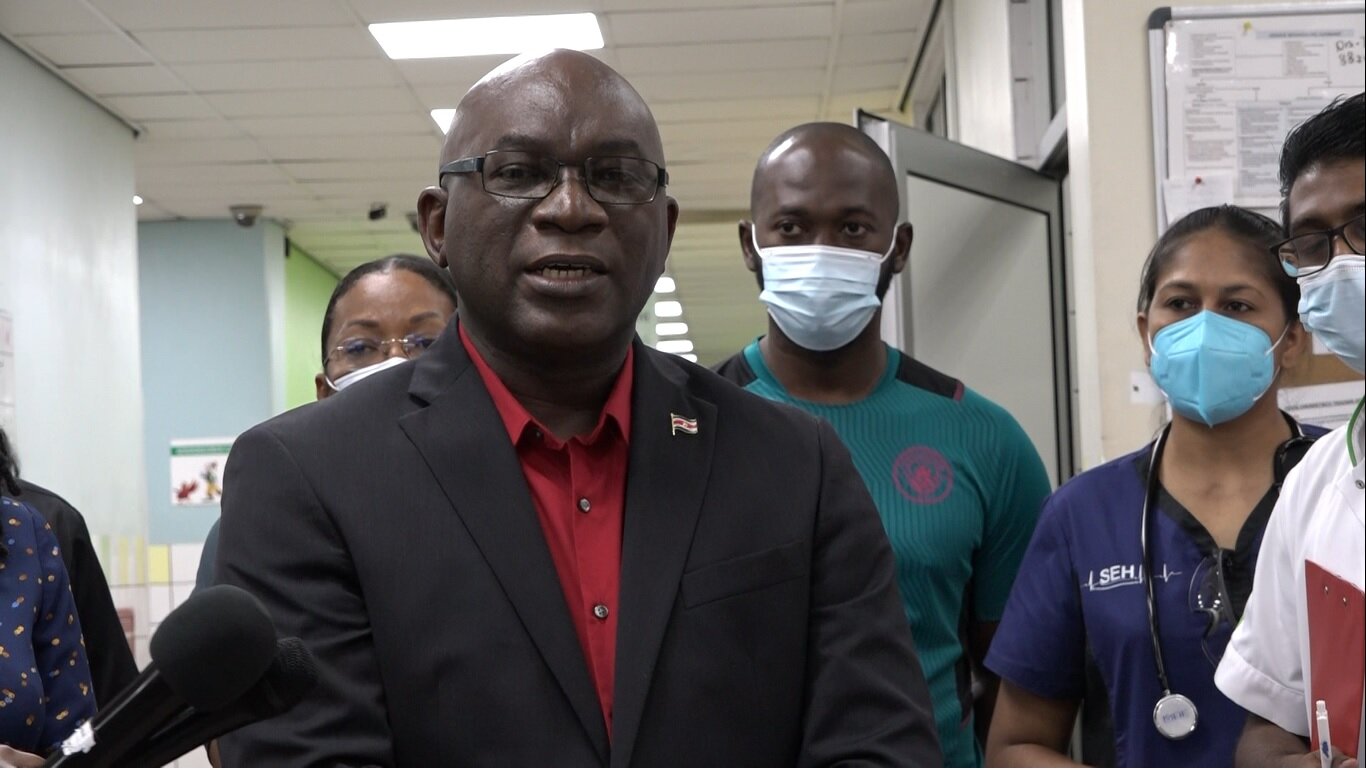 Justitieminister Kenneth Amoksi sprak het personeelsteam van de Spoedeisende Hulp (SEH) van het Academisch Ziekenhuis Paramaribo (AZP) de moed in.