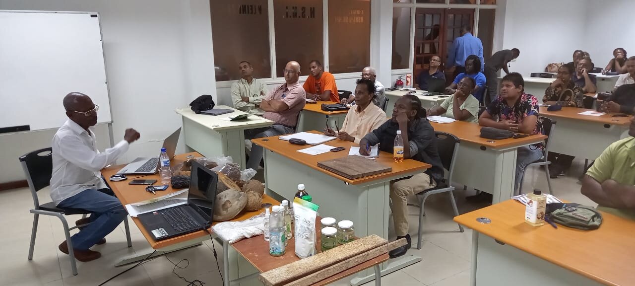 De eerste kokostraining van het Suriname Business Forum en International Trade Center in samenwerking met het Ministerie van Landbouw, Veeteelt en Visserij (LVV) vond op vrijdag 29 juli plaats. Deze kokostraining werd verzorgd in het Lalla Rookh-gebouw.
