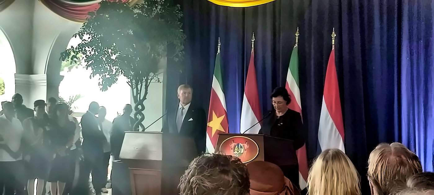 In zijn toespraak benadrukte de koning dat het voor beide landen essentieel is om het gezamenlijke verleden onder ogen te zien. Daarbij noemde hij de slavernij en de impact ervan op nazaten van tot slaaf gemaakten en inheemse gemeenschappen. “Tijdens ons bezoek gaan we de geschiedenis niet uit de weg, ook niet de pijnlijke elementen erin, zoals de slavernij. We gaan graag in gesprek met nazaten voor wie dit een diepe betekenis heeft,” zei hij.