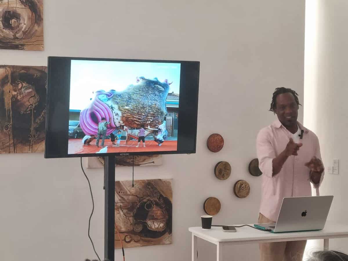 Zo omschrijft de in Haïti geboren Asser Saint-Val, een multidisciplinaire kunstenaar uit Zuid-Florida, Verenigde Staten, de essentie van zijn kunst. Hij staat bekend om zijn werk in schilder-, beeldhouw- en installatiekunst, dat te zien is geweest in solo- en groepstentoonstellingen in Zuid-Florida, Noord-Carolina, Tennessee, New York, Washington D.C. en het Caribisch gebied. Op donderdag 20 maart gaf hij een presentatie over zijn werk in de Readytex Art Gallery aan de Steenbakkerijstraat, waar hij tot en met vrijdag te gast is als ‘artist-in-residence’ van Diaspora Vibe Cultural Arts Incubator (DVCAI) in Suriname.