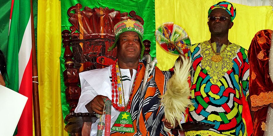 “Vandaag is een grote dag voor de mensen van het binnenland, we staan hier vandaag om een heugelijk feit te bedenken. Om gezanten van Afrika in Suriname samen te zien met de vicepresident is geen klein ding”, zegt Ivan Emanuel, hoofdkapitein van de Matawai. Dat mensen niet blij zijn met de bekroning van Brunswijk, verwijt Emanuel aan jaloezie. “Laten we over de goede dingen praten die hij heeft gedaan. De Matawai gemeenschap staat met u. Wij hopen dat wij het feest tot in de late uren kunnen vieren”, spreekt Emanuel zijn ondersteuning uit.